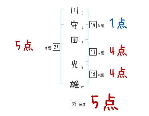 川守田光雄さんの画数の鑑定結果