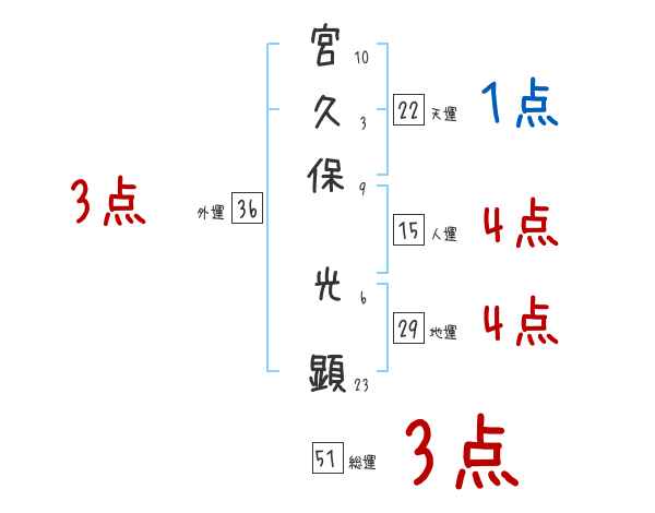 宮久保光顕さんの画数の鑑定結果