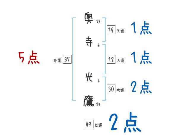 奥寺光鷹さんの画数の鑑定結果