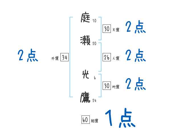 庭瀬光鷹さんの画数の鑑定結果