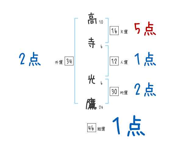 高寺光鷹さんの画数の鑑定結果