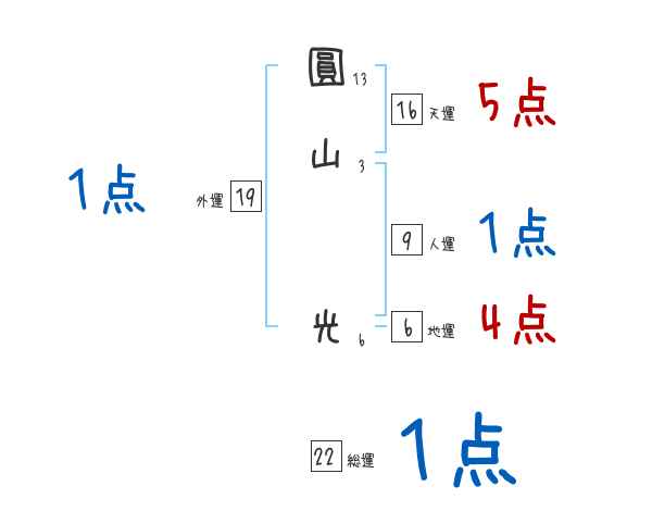 圓山光さんの画数の鑑定結果
