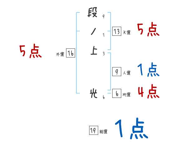 外運![]() | 段ノ上光さんの外運は16画の5つ星!人望が厚く大きく発展する。逆転成功が見える。 生活面を象徴する運勢です。外部から受ける影響力を表し、結婚運、家庭運や職場、環境への順応性を表します。 |