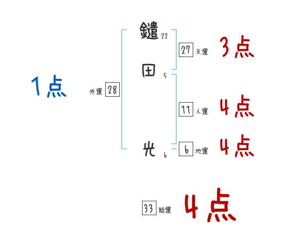 鑓田光さんの画数の鑑定結果