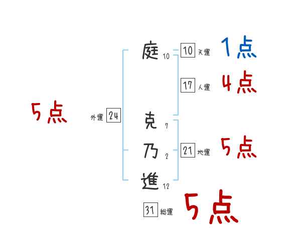 庭克乃進さんの画数の鑑定結果