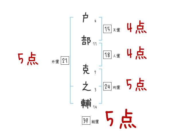 戸部克之輔さんの画数の鑑定結果