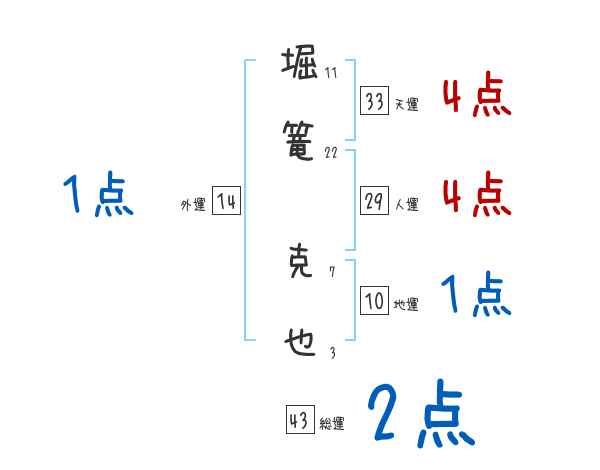 堀篭克也さんの画数の鑑定結果