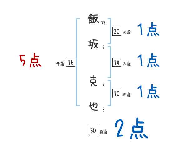 飯坂克也さんの画数の鑑定結果