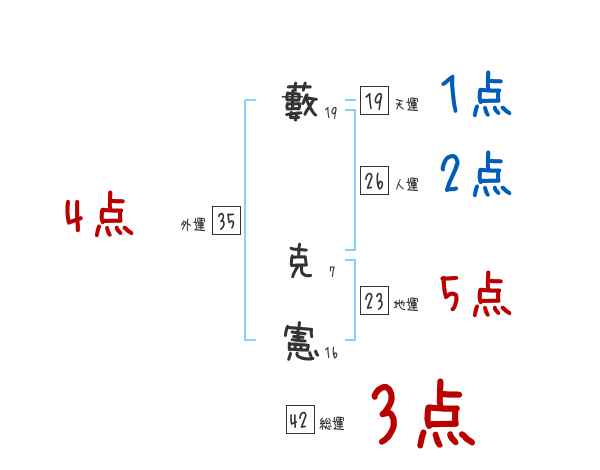 藪克憲さんの画数の鑑定結果