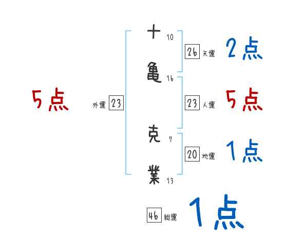 十亀克業さんの画数の鑑定結果
