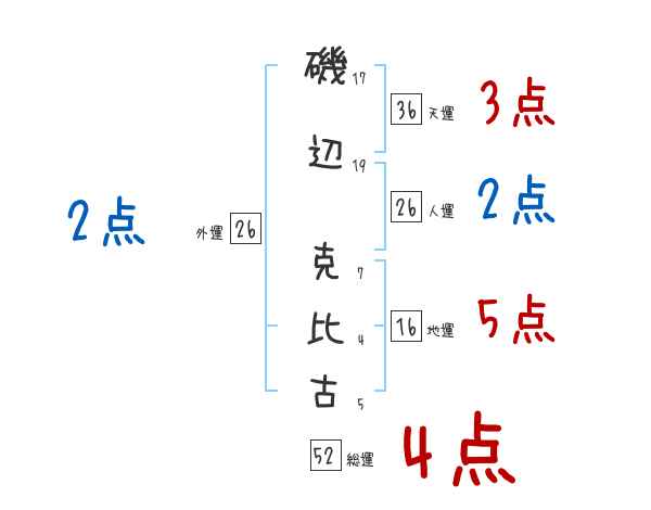 磯辺克比古さんの画数の鑑定結果