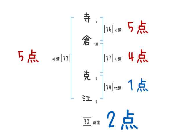 寺倉克江さんの画数の鑑定結果