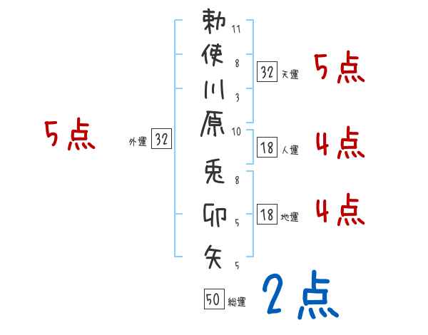 外運![]() | 勅使川原兎卯矢さんの外運は32画の5つ星!柔軟性があり成功する。チャンスが多く金運が良い。 生活面を象徴する運勢です。外部から受ける影響力を表し、結婚運、家庭運や職場、環境への順応性を表します。 |