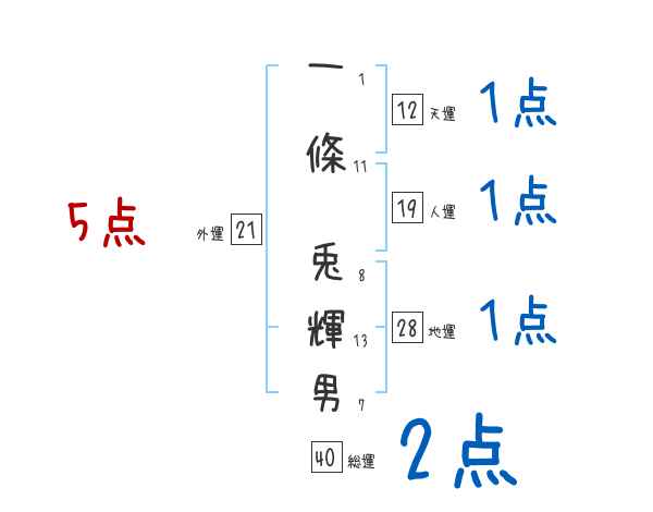 一條兎輝男さんの画数の鑑定結果