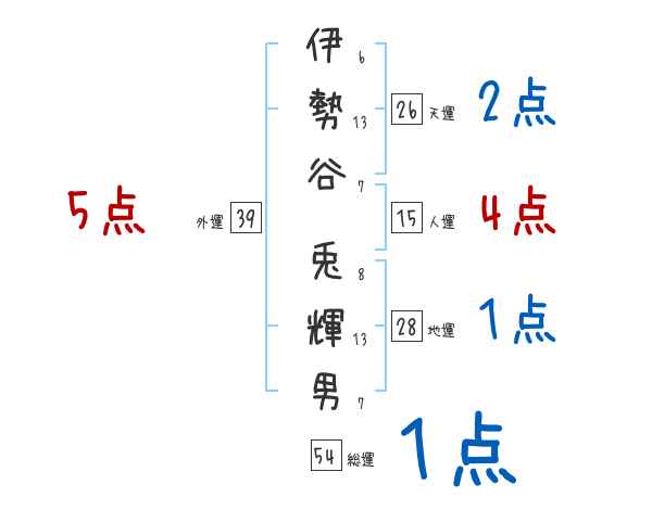 伊勢谷兎輝男さんの外運は39画の5つ星