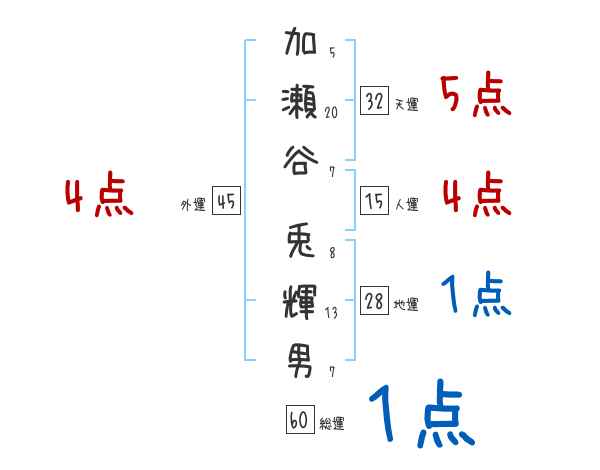 加瀬谷兎輝男さんの天運は32画の5つ星