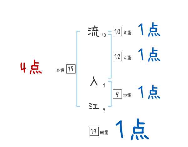 天運![]() | 流入江さんの天運は10画の1つ星!不安を感じやすい傾向。ストレスを抱えないように注意しましょう。 家系が持つ宿命的な運勢を表します。祖先から受け継いだ苗字ですので自分の力が及びません。家柄を象徴します。 |