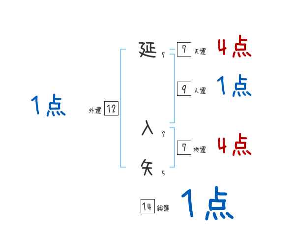 天運![]() | 延入矢さんの天運は7画の4つ星!強い意志や信念を持ち独立心が強い。自立する。 家系が持つ宿命的な運勢を表します。祖先から受け継いだ苗字ですので自分の力が及びません。家柄を象徴します。 |