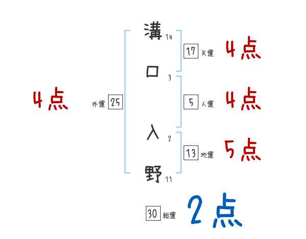総運![]() | 溝口入野さんの総運は30画の2つ星!浮き沈みの激しさに注意しましょう。 あなたの人生を表す1番重要な運勢です。生涯を通じて影響する総合運となり、主に50歳以降の晩年期に影響を及ぼします。 |