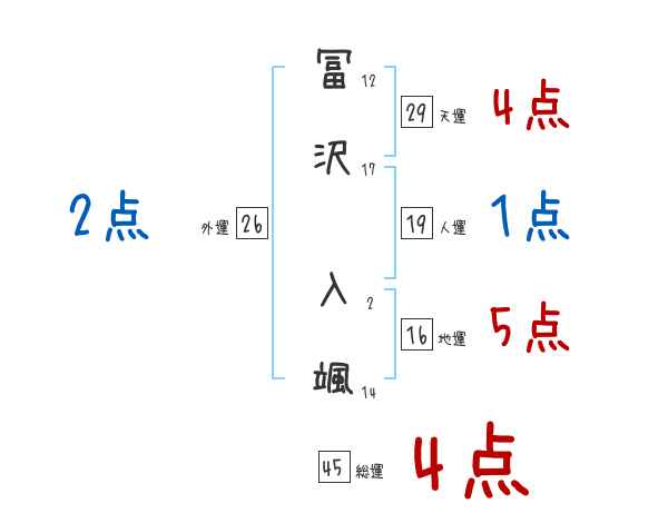 冨沢入颯さんの画数の鑑定結果