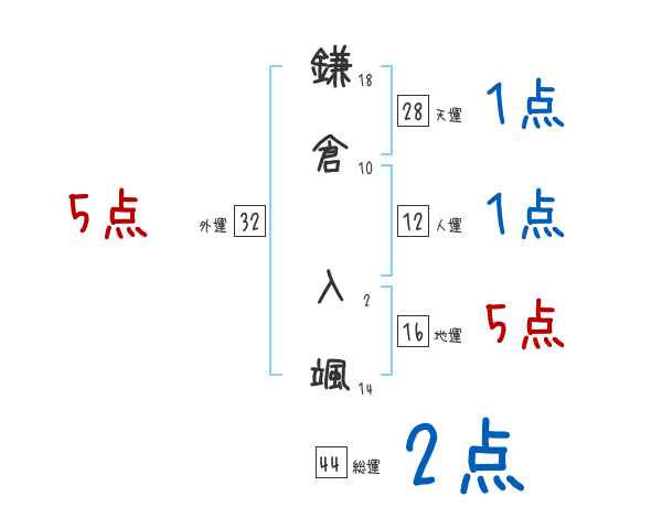 鎌倉入颯さんの画数の鑑定結果