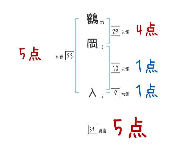 鶴岡入さんの画数の鑑定結果