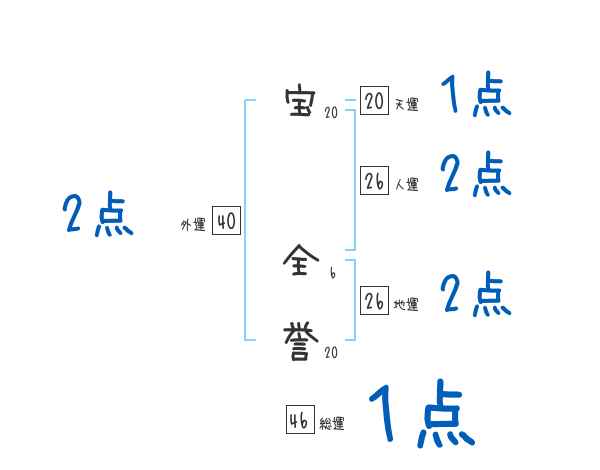 宝全誉さんの外運は40画の2つ星