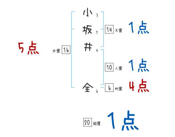 外運![]() | 小坂井全さんの外運は16画の5つ星!人望が厚く大きく発展する。逆転成功が見える。 生活面を象徴する運勢です。外部から受ける影響力を表し、結婚運、家庭運や職場、環境への順応性を表します。 |