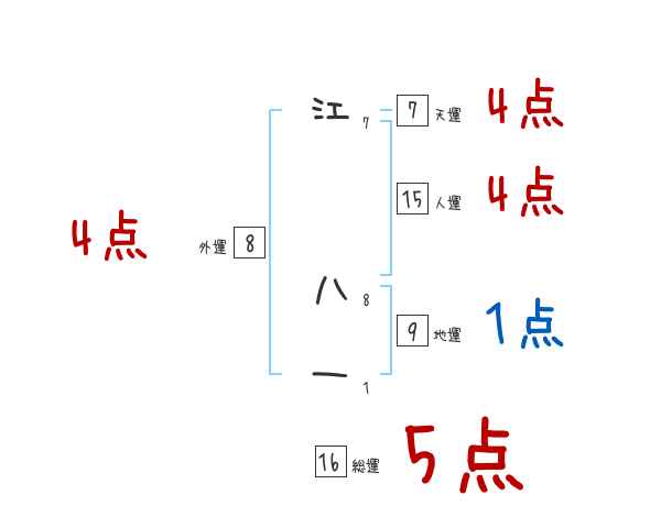 天運![]() | 江八一さんの天運は7画の4つ星!強い意志や信念を持ち独立心が強い。自立する。 家系が持つ宿命的な運勢を表します。祖先から受け継いだ苗字ですので自分の力が及びません。家柄を象徴します。 |