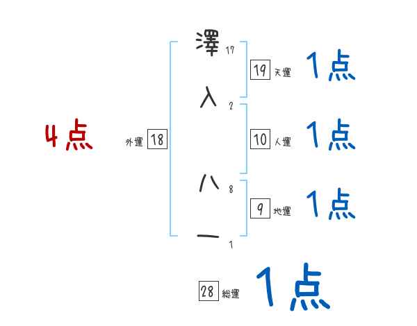 澤入八一さんの画数の鑑定結果