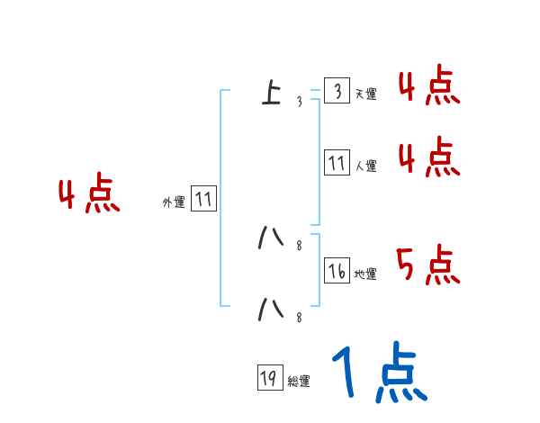 天運![]() | 上八八さんの天運は3画の4つ星!活動的で才能に恵まれ、多くの信頼を得る。希望に満ち成長する。 家系が持つ宿命的な運勢を表します。祖先から受け継いだ苗字ですので自分の力が及びません。家柄を象徴します。 |