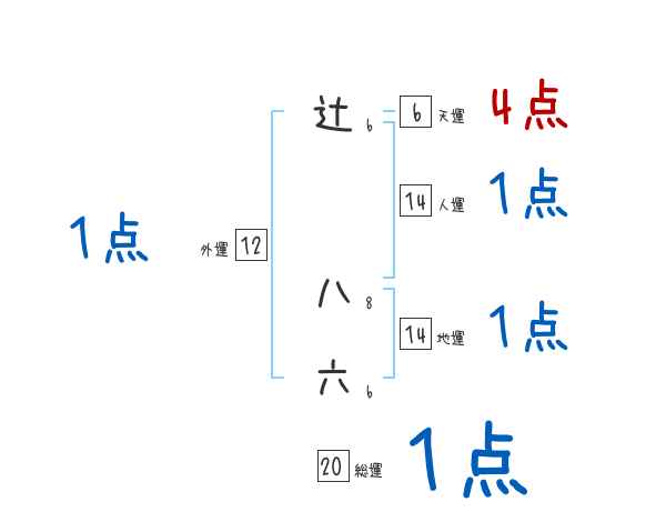 天運![]() | 辻八六さんの天運は6画の4つ星!慎重な努力家で信頼を得る。誠実な精神で向上心に優れる。 家系が持つ宿命的な運勢を表します。祖先から受け継いだ苗字ですので自分の力が及びません。家柄を象徴します。 |