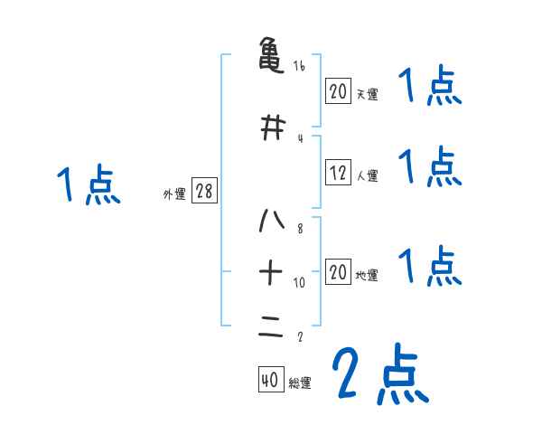 亀井八十二さんの画数の鑑定結果