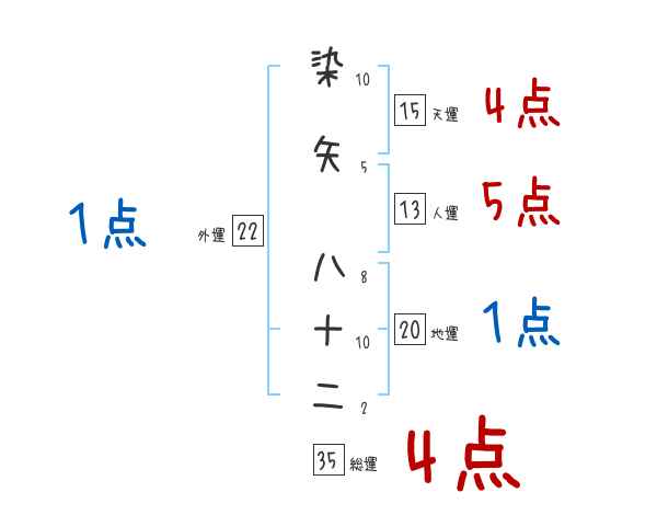 染矢八十二さんの画数の鑑定結果