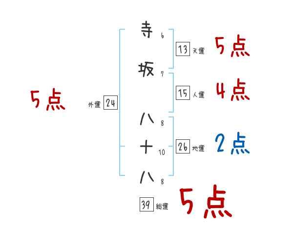 寺坂八十八さんの画数の鑑定結果