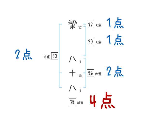 梁八十八さんの画数の鑑定結果
