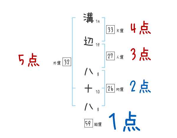 溝辺八十八さんの画数の鑑定結果