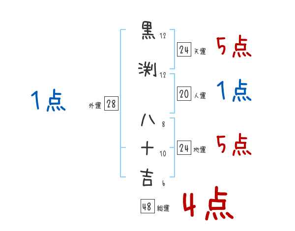 黒渕八十吉さんの画数の鑑定結果