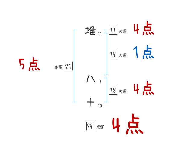 堆八十さんの画数の鑑定結果