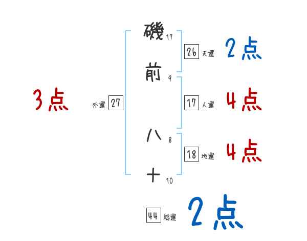 磯前八十さんの画数の鑑定結果