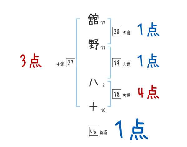 舘野八十さんの画数の鑑定結果