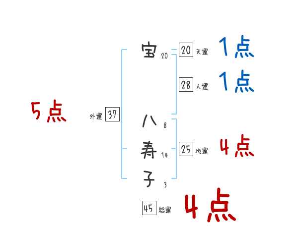 宝八寿子さんの画数の鑑定結果