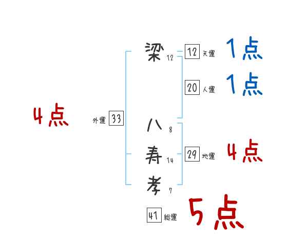 梁八寿孝さんの画数の鑑定結果