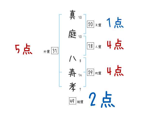 天運![]() | 真庭八寿孝さんの天運は20画の1つ星!社交が苦手。人とは違った才能があり波乱万丈な人生かも。 家系が持つ宿命的な運勢を表します。祖先から受け継いだ苗字ですので自分の力が及びません。家柄を象徴します。 |