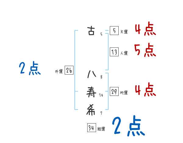 古八寿希さんの画数の鑑定結果