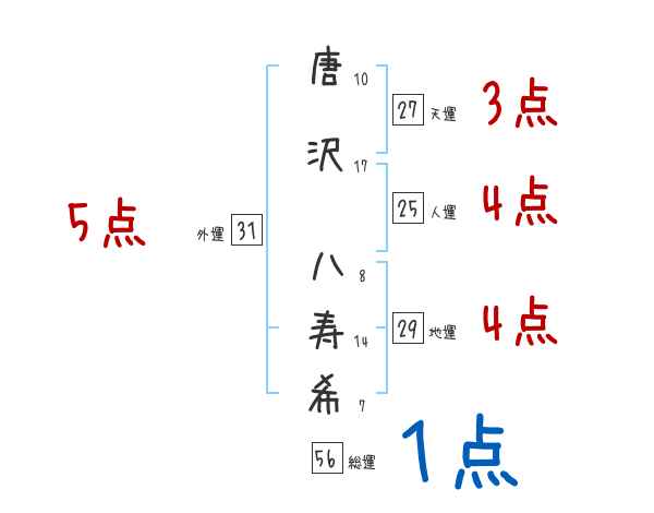 唐沢八寿希さんの画数の鑑定結果