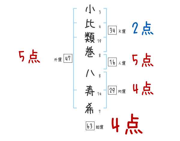 小比類巻八寿希さんの画数の鑑定結果
