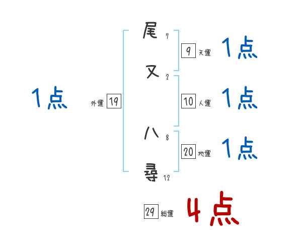 尾又八尋さんの画数の鑑定結果
