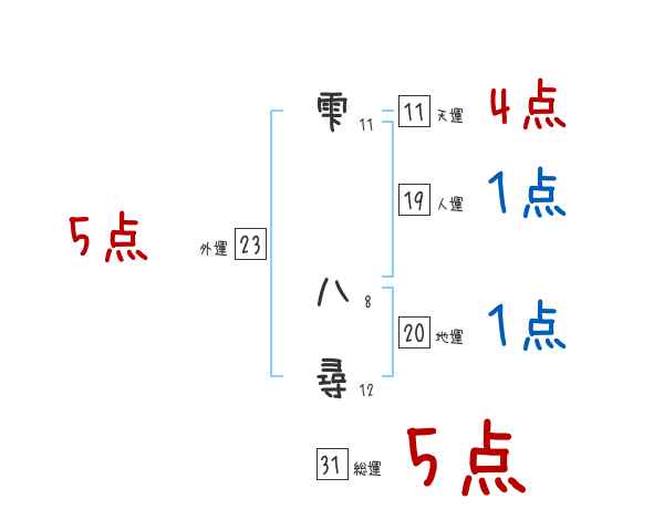 雫八尋さんの画数の鑑定結果