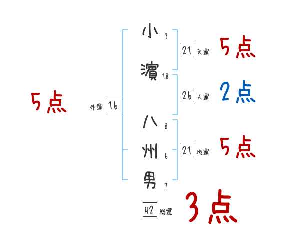 小濵八州男さんの画数の鑑定結果